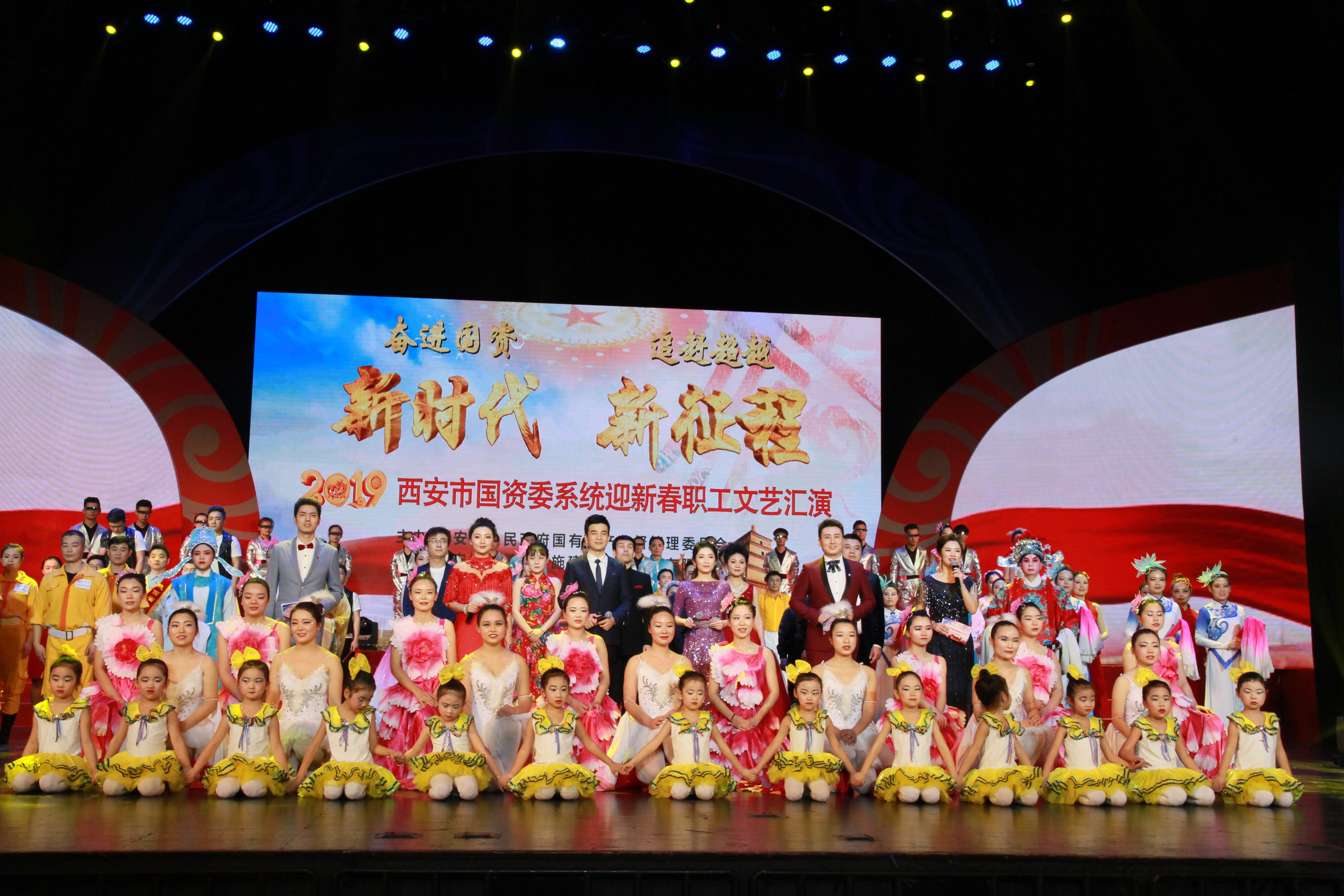 ? ? 瑞犬辭舊歲,金豬迎新春。2019年1月28日下午,西安市國資委系統以“奮進國資新時代 追趕超越新征程”為主題的2019年迎新春職工文藝匯演在曲江國際會議中心三樓大禮堂隆重舉行。來自西安市國資委系統內35戶企業的650名演員為大家奉上了一場精彩絕倫的文藝盛宴。市國資委系統的近2000名干部職工觀看了演出。文藝匯演并舉行了頒獎活動。