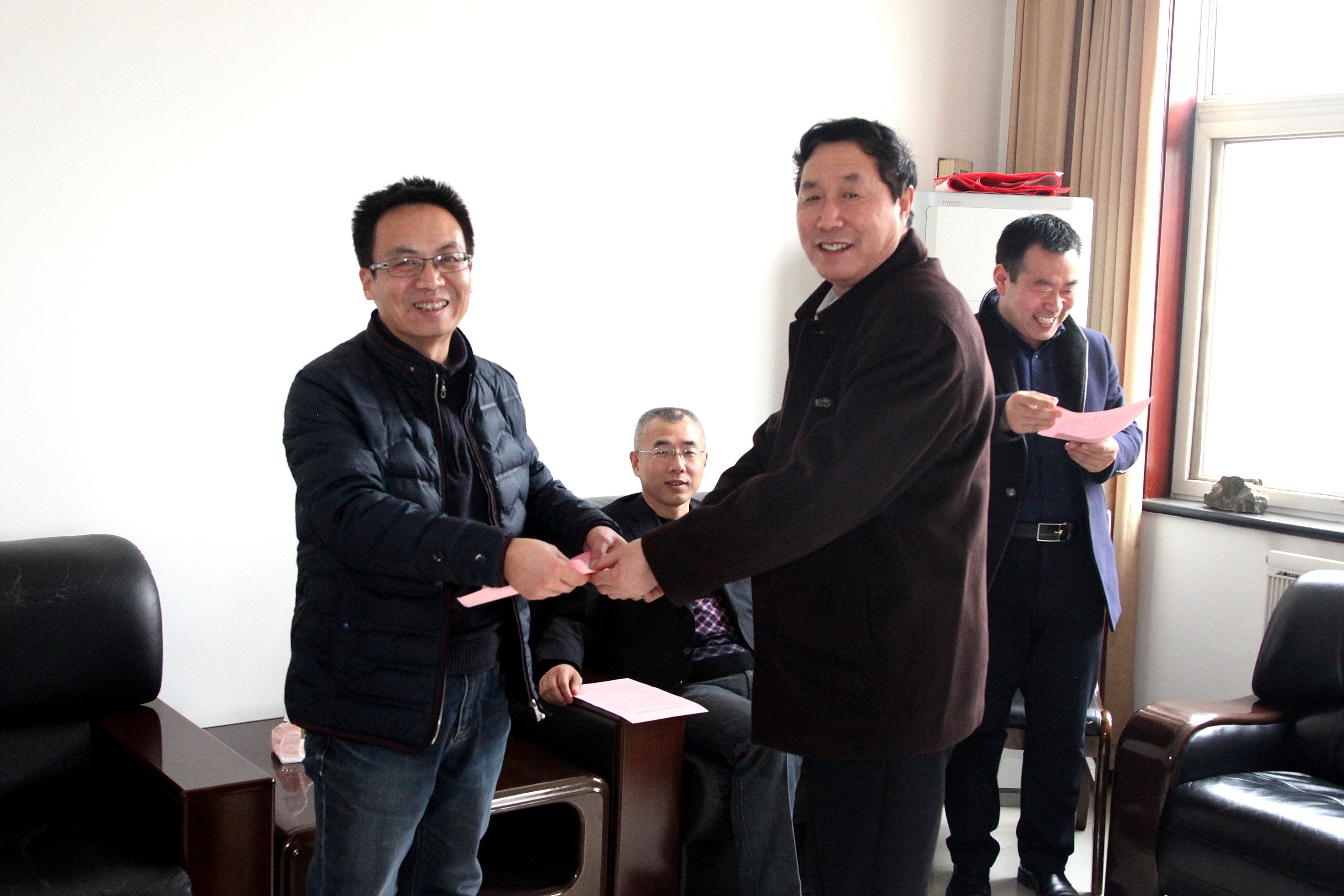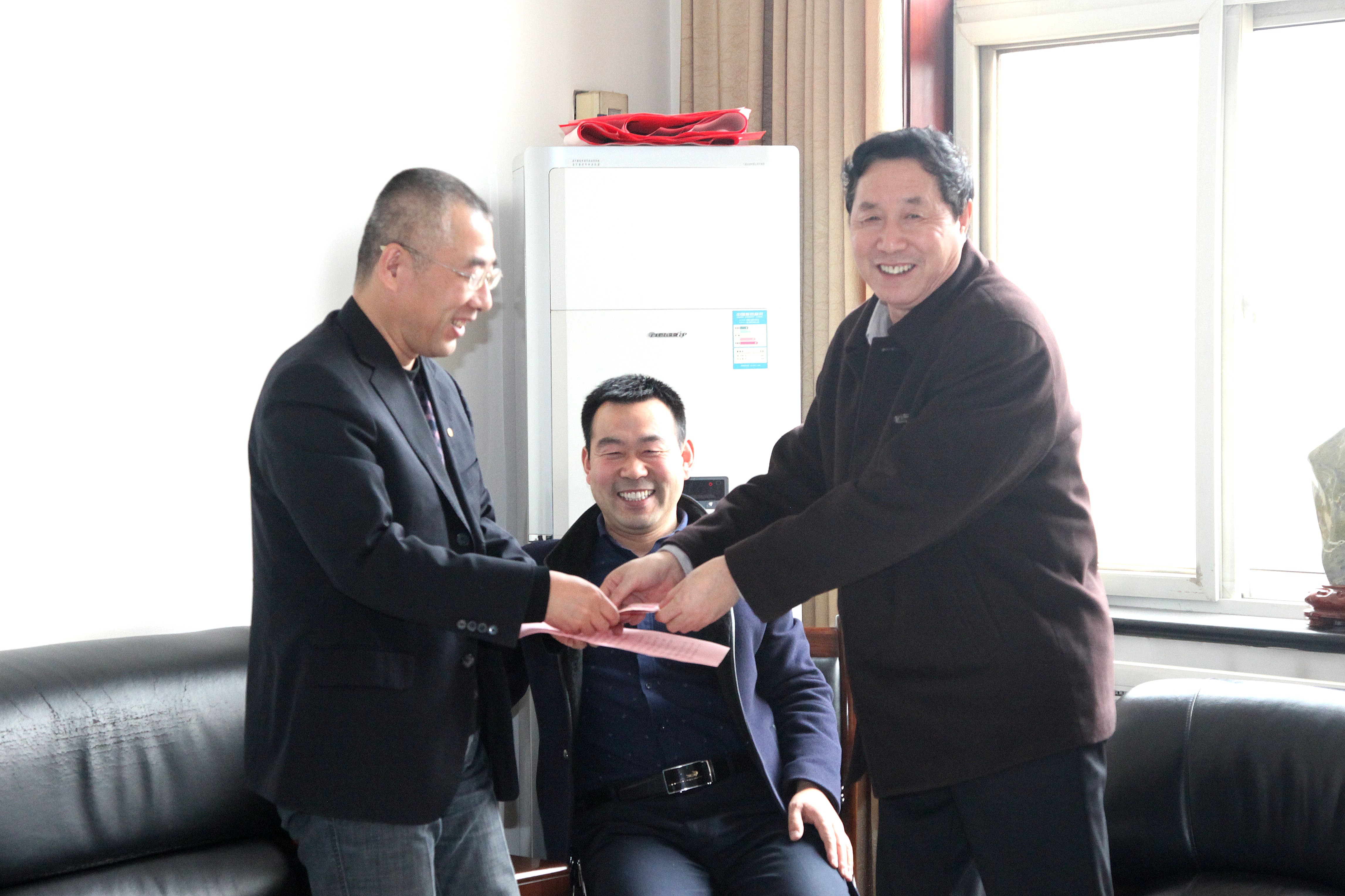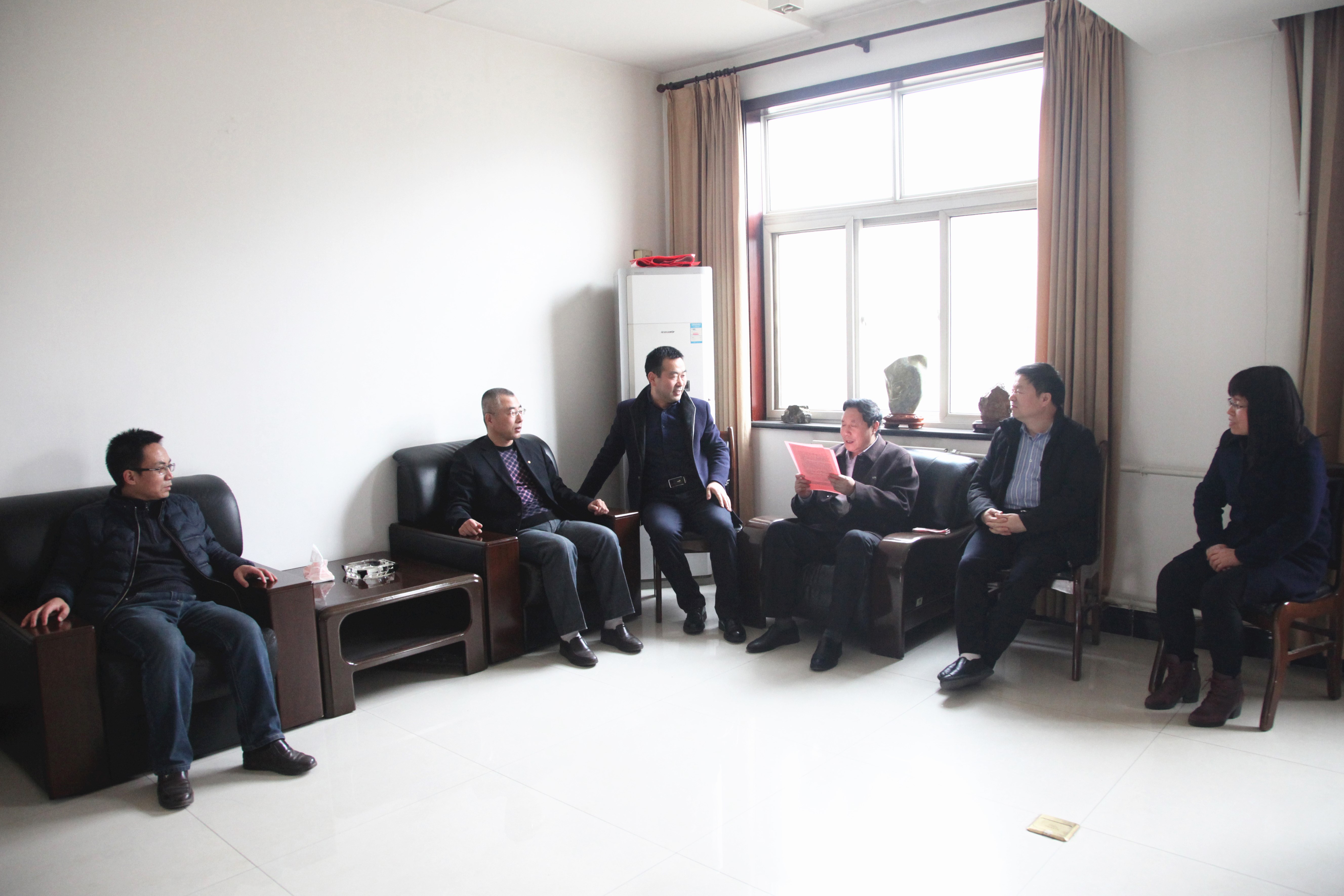 ? ? 在2019年春節來臨之際,?1月29日,公司黨委書記、執行董事、總經理王新坪,工會主席趙養科看望慰問了全國“五一勞動獎章”獲得者趙希普、陜西省勞動模范李新勝,西安市勞動模范劉建利和陳小龍同志,宣讀了省總工會、市總工會致勞動模范的慰問信,轉達了組織對勞模及家人親切的問候和美好的祝愿,并送上了慰問金。隨后又看望慰問了離休老干部劉海明、許俊賢等,為他們送去了慰問金和慰問品,送去了組織的關懷。黨群工作部、離退休管理中心負責人和工會相關人員陪同慰問。