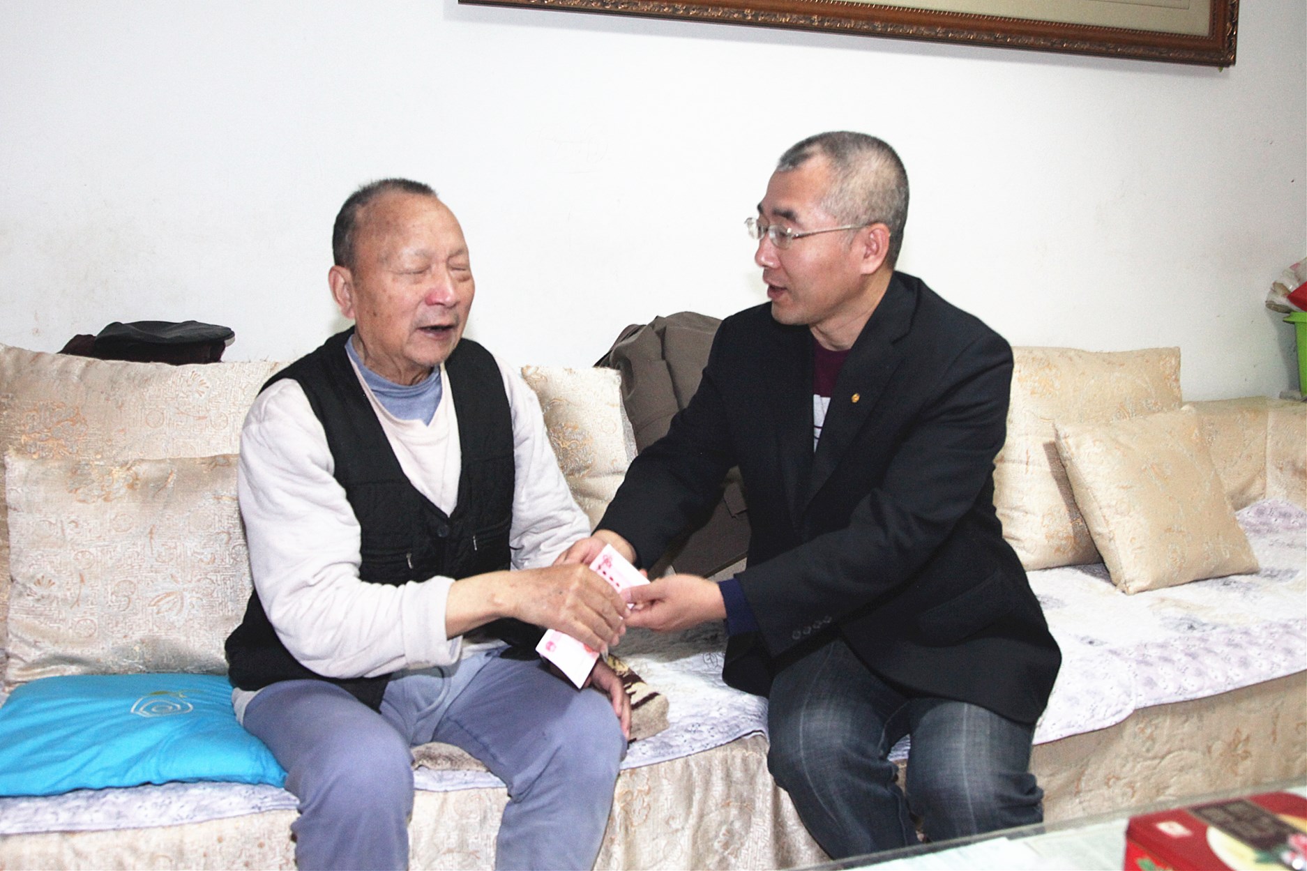 ? ? 1月30日,黨委副書記、紀委書記李新勝在黨群工作部負責人陪同下,走訪慰問了雙目失明老黨員鄒顯權,送去了慰問金和新春的祝福。此次慰問通過不同形式共慰問困難黨員15人。