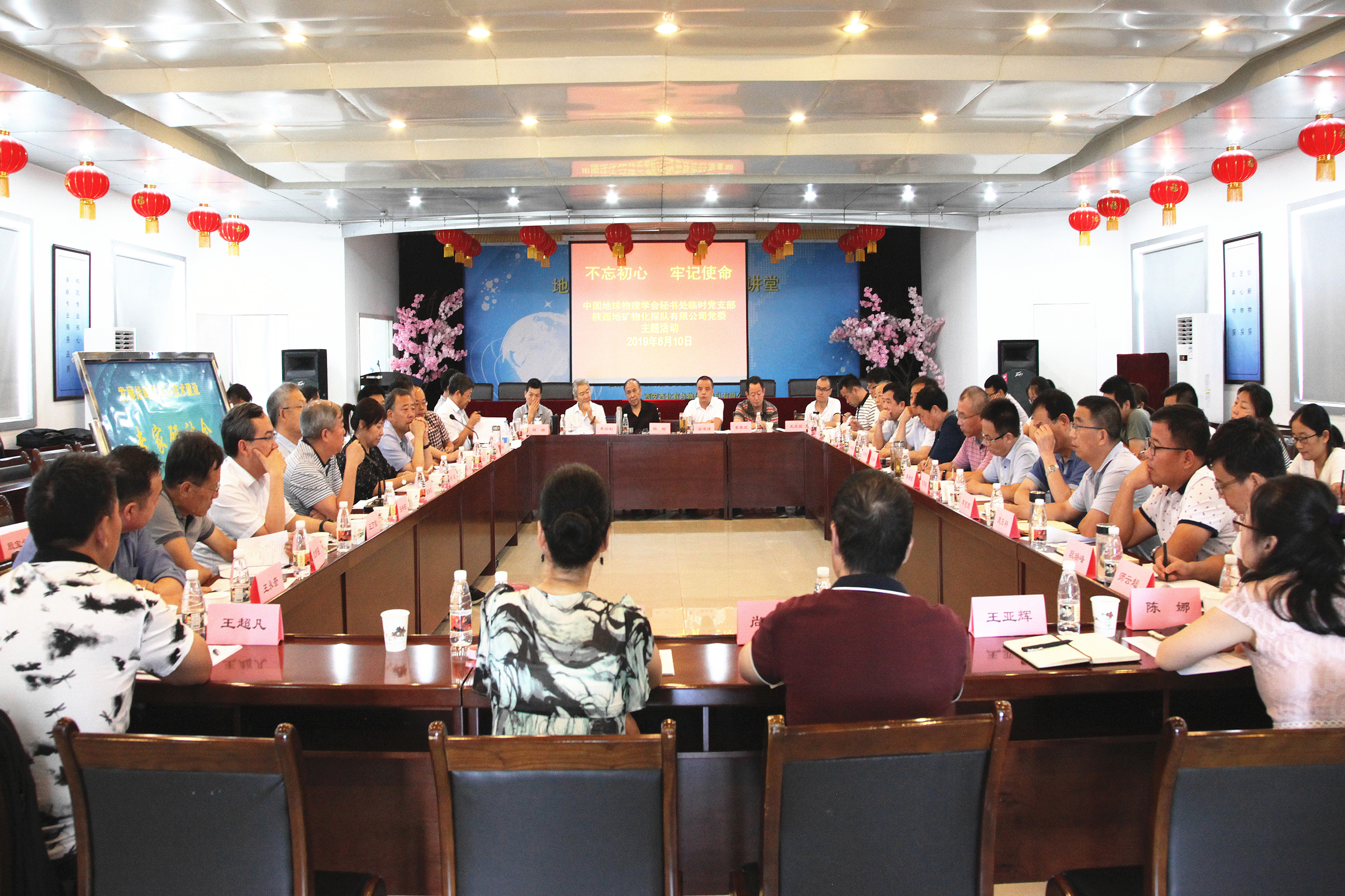 ? ? 2019年中國地球物理學會“地球物理科技推廣專家大講堂”會議期間,一場由中國地球物理學會臨時黨支部、陜西地礦物化探隊有限公司黨委共同舉辦的“不忘初心,牢記使命”主題黨日活動, 8月10日在西安舉行。