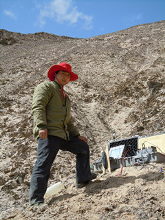 ? ? 團隊精神結碩果。在工作中,田靖同志始終沖在最前面,把最困難的工作留給自已,總是晴天一頭汗,雨天一身泥,和隊友們打成一片,哪里最難干,哪里最危險,他就出現在哪里,他的模范帶頭作用,凝聚大家心往一塊想,勁往一塊使,使得電發工作順利開展。磁法工作區離駐地20多公里,沒有車無路,于是只好買來小帳蓬,進行一次小搬家,背起行李、鍋灶住了進去。當時好幾個隊友心里比較懼怕,地形不好,擔心狼、雪豹等野生動物。面對這種情況,田靖同志給大家開會做思想工作,打消了隊友們的顧慮,最終沒有一個隊友退縮,大家以苦為樂,風趣地說就全當是一次野營。