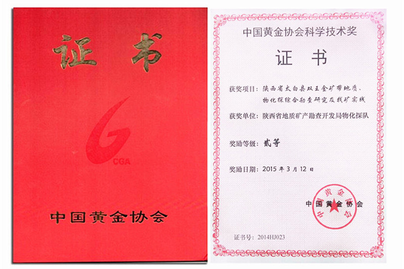? ? 物化探隊(duì)承擔(dān)的2014年完成的“陜西省太白縣雙王金礦帶地質(zhì)、物化探綜合勘查研究及找礦實(shí)踐”項(xiàng)目,榮獲中國黃金協(xié)會頒發(fā)的“科學(xué)技術(shù)二等獎”。同時獲此殊榮的個人有項(xiàng)目負(fù)責(zé)毛軍衛(wèi)、技術(shù)負(fù)責(zé)馮旭輝、技術(shù)員劉昊培。