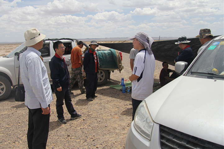? ? 6月29日--7月5日,副隊長申安斌、總工劉建利及有關部門負責人一行組成的檢查組,深入我隊內蒙《銀額盆地及周緣油氣基礎地質調查綜合物化探剖面測量》項目工區檢查指導工作,并看望慰問堅持在高溫下作業的一線職工,為他們送去防暑降溫用品。