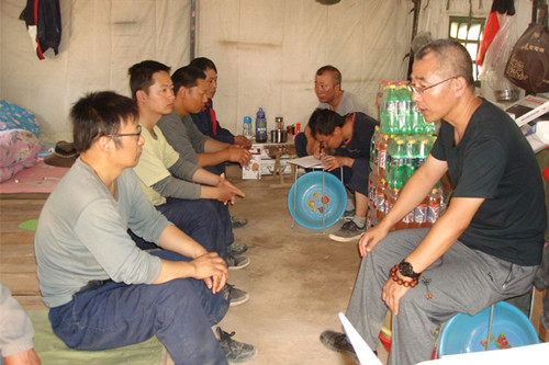 ? ? 李新勝?gòu)?qiáng)調(diào),化探野外工作要按照布設(shè)點(diǎn)要求嚴(yán)格取樣,做好標(biāo)記,并保存好近、中、遠(yuǎn)景取樣的圖片資料,保留GPS航跡;加強(qiáng)資料的綜合研究,做好鉆孔資料的設(shè)計(jì)圖。加強(qiáng)高原地區(qū)安全防護(hù)工作,確保生產(chǎn)生活安全。在惡劣的工作環(huán)境下和地質(zhì)條件下,全體項(xiàng)目人員要發(fā)揚(yáng)艱苦奮斗的精神,特別是共產(chǎn)黨員要以“四我”要求為動(dòng)力,堅(jiān)定戰(zhàn)勝困難和完成任務(wù)的信心,做好表率;項(xiàng)目全體人員要不畏險(xiǎn)阻,團(tuán)結(jié)一心,為圓滿完成項(xiàng)目各項(xiàng)任務(wù)努力工作。