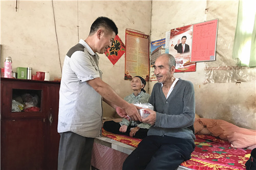 ? ? 15日一大早,機關支部黨員代表7人帶著支部全體黨員的重托,趕赴扶風縣天度鎮天度村,在集團公司駐天度村扶貧第一書記蘇小強同志的引導下,把輪椅送到了貧困戶馬治禮家中,給年近8旬的貧困戶王養門和老伴強茸堂送去了治療心臟病和眼睛疾病的藥品,兩位失明老人心情格外激動,緊緊拉著黨員同志的手說:感謝你們的關心,黨的扶貧政策太好了,我們才有了活下去的信心。