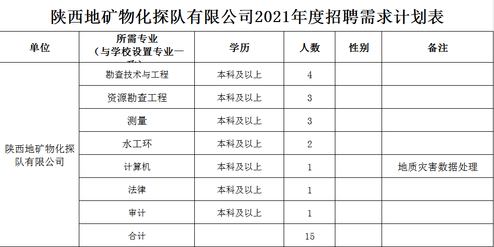 陜西地礦物化探隊有限公司2021年招聘計劃